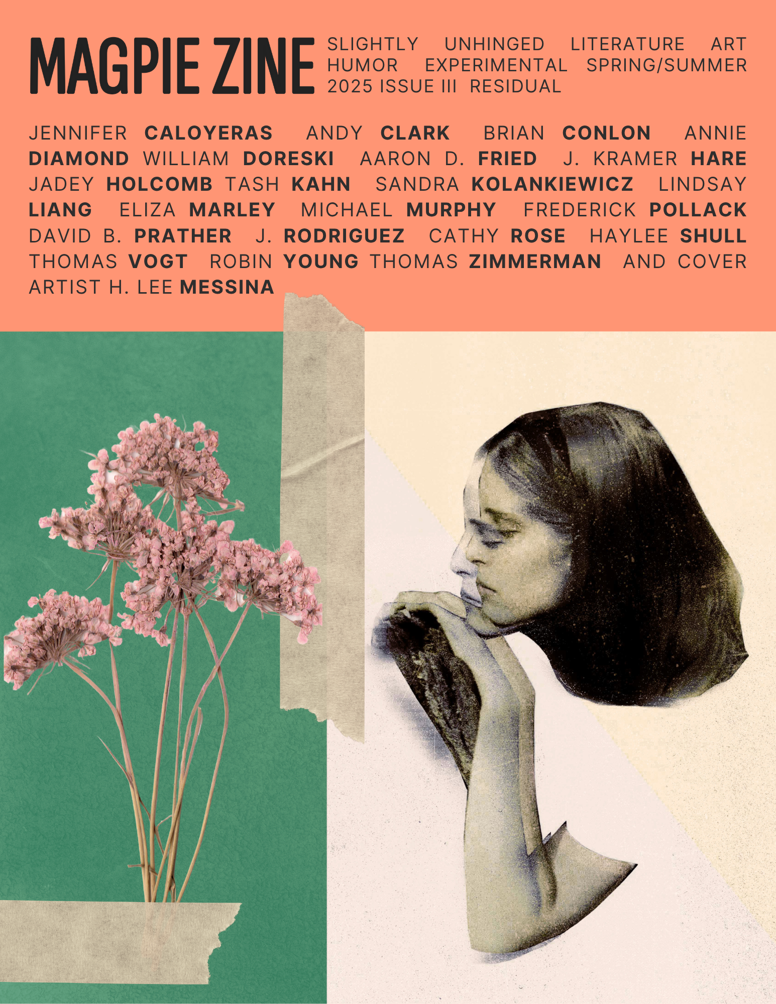 Jennifer Caloyeras, Andy Clark, Brian Conlon, Aaron D. Fried, Tash Kahn, Cathy Rose, Lindsay Liang, Eliza Marley, Michael Murphy, J. Kramer Hare, J. Rodriguez, Frederick Pollack, David Prather, Annie Diamond, Thomas Zimmerman, Sandra Kolankiewicz, William Doreski, Haylee Shull, Jadey Holcomb, Thomas Vogt, and cover artist H. Lee Messina.